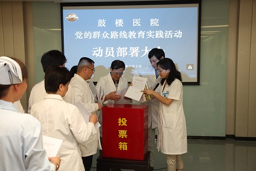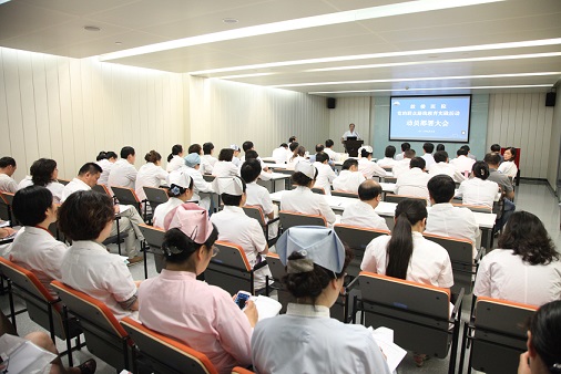 会议由院长兼党委书记丁义涛同志主持,他首先代表医院党委对开展党的群众路线教育实践活动做了四点要求。丁院长指出:党的群众路线教育实践活动是党的十八大做出的重要的战略部署,鼓楼医院是南京市确立的第一批党的群众路线教育实践活动的开展单位,医院上下首先要统一思想,深刻认识开展教育实践活动的重要意义;二是要严格步骤,推动教育实践活动在医院的扎实开展;三是要准确把握,确保教育实践活动在医院开展的有声有色;四是要加强领导,狠抓落实,确保这次活动不走过场、扎实推进。