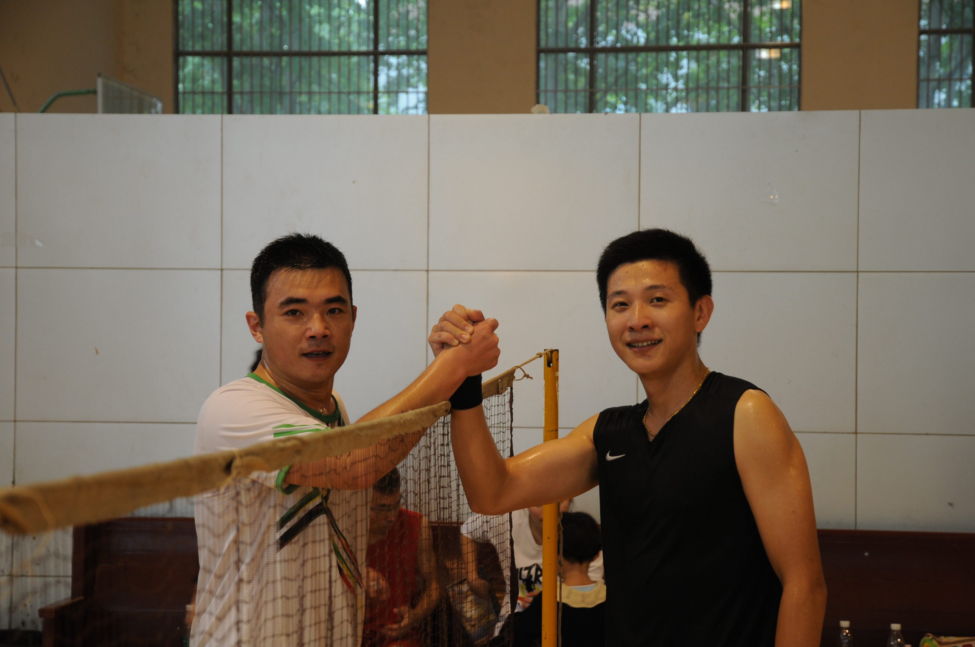 体育馆内却灯火通明,呐喊声、喝彩声一浪高过一浪。2013年鼓楼医院职工羽毛球比赛正在这里进行激烈的比赛。