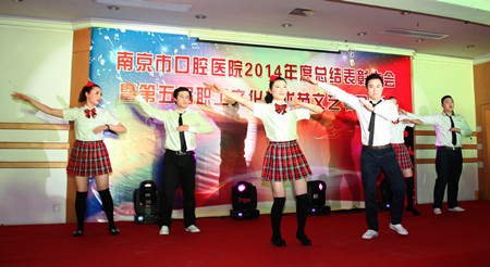 富有青春活力、积极向上的精神风貌。口腔修复支部合唱《口院版时间都去哪儿了》、机关支部《小人舞》等节目获得现场观众阵阵喝彩。节目比赛中穿插抽奖环节,为中奖者赠送由院长书记签发的“和”字明信片,意味着和气的人际关系、和睦的家庭氛围、和谐的工作环境需要我们共同用心营造,希望口院人在新的一年里人和万事兴、家和万事兴、院和万事兴!