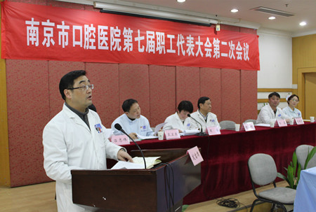 3月11日至12日,南京市口腔医院第七届职工代表大会第二次会议在在15楼会议室胜利召开。医院院长胡勤刚,党委书记王磊,党委副书记、工会主席周楠等院领导及来自医院7个分工会120余名正式代表、列席代表和特邀代表参加了会议。会议由党委副书记、工会主席周楠主持。