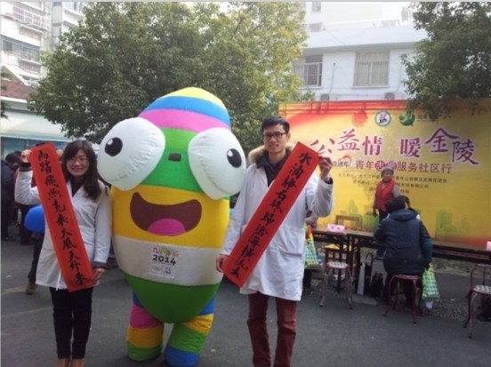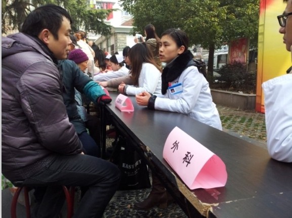 2014年1月19日上午,由鼓楼医院、胸科医院青年志愿者服务队组成的“南京鼓楼医院集团青年志愿者联盟”结合各自医院的优势特点,精心组织了青年医护志愿者到建邺区南湖街道沿河社区进行义诊服务及新年“送祝福”活动。