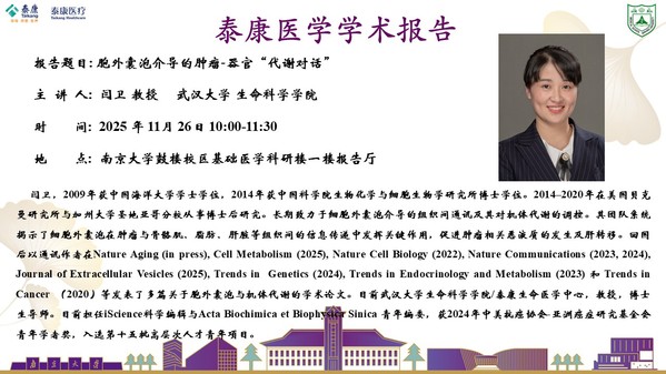 2025.11.26泰康医学学术报告-闫卫教授:胞外囊泡介导的肿瘤-器官“代谢对话”