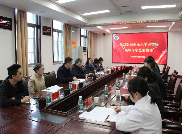 附属金陵医院卫勤部部长莫群等院领导接待检查组并详细介绍教学工作开展情况。附属金陵医院聚焦教学组织优化、资源整合与师资强化,展示了提升学生临床技能、科研能力等方面的积极探索。各教研室主任在座谈中围绕“临床与科研双向赋能”展开讨论,并表示期待进一步深化院校协同,全面提升学生创新与实践能力。