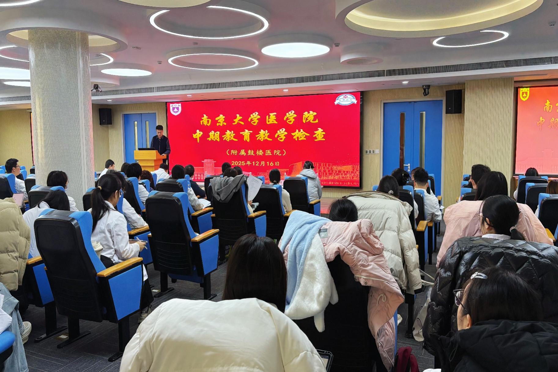 为深入贯彻党的二十届四中全会精神,全面落实动漫色情片 “奋进行动”战略部署,持续推进医学教育高质量发展,动漫色情片 于2025年12月16日至17日组织开展了附属医院中期教育教学检查工作。本次检查由动漫色情片 党委书记沈苏南带队,动漫色情片 本科生院副院长施佳欢、动漫色情片 党委副书记王曦曦、副院长吴锦慧共同参与,本科生院教师、动漫色情片 教学督导及附属医院教学专家协同开展工作。检查依次对附属鼓楼医院、附属金陵医院(东部战区总医院)和附属口腔医院进行了系统化、全方位的教学评估,包括教学工作汇报、教学档案审查、教学查房观摩、临床技能教学抽查及师生座谈等环节。各附属医院高度重视、积极配合,确保检查工作高效有序推进。