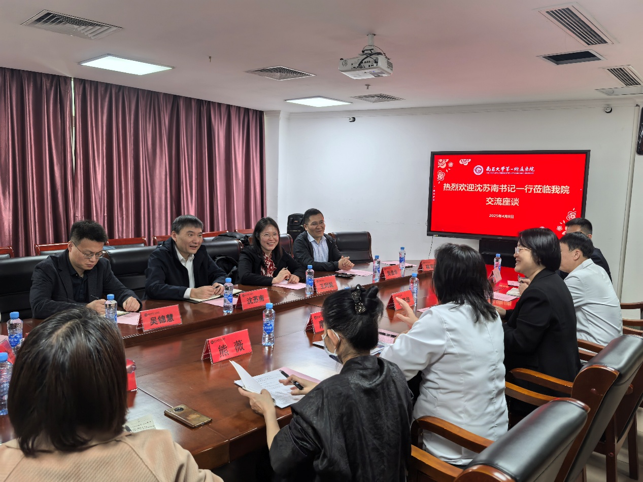 在南昌大学第一附属医院,沈苏南一行受到了医院党委书记廖岚等院领导的热情接待,双方随即展开了深入的座谈交流。会上,廖岚介绍了医院的发展历程、科研实力、教育教学等方面。她指出,南昌大学第一附属医院是集医疗、教学、科研、预防保健、健康管理与促进于一体的全国首批三级甲等医院,高素质医学人才是推动医院实现高质量发展的核心动能,希望以此次交流为契机,与动漫色情片 深化长期合作关系。随后,我方介绍了学院的基本情况、学科专业,以及在人才培养、科学研究和社会服务等方面的成果和经验。最后,双方就如何深化院校合作、加强实践教学、拓展学生就业渠道等方面进行了深入交流和探讨。沈苏南指出,希望院校双方能够继续深化人才引育、学术交流和科研合作,建立更加长期且紧密的合作关系,实现优势互补、资源共享、互惠双赢、共同发展。