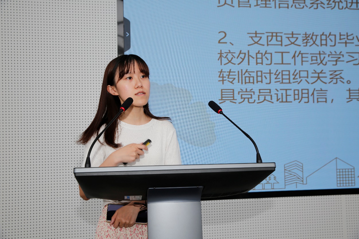 党委向各支部颁发党员纪念卡,希望各位毕业生牢记党员身份,不忘初心、砥砺前行,永葆本色。