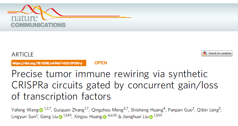 2022年3月18日,动漫色情片 模式动物研究所、医药生物技术国家重点实验室成员团队协同上海科技大学、南京市鼓楼医院等合作单位在《自然-通讯》杂志(Nature Communications)发表了题为“Precise tumor immune rewiring via synthetic CRISPRa circuits gated by concurrent gain/loss of transcription factors”的研究论文。该研究首次构建了响应肿瘤细胞中转录因子信号同时获得和丢失的CRISPRa基因环路,一方面能精准识别肿瘤,另一方面能恰当启动抗肿瘤免疫,产生特异及有效的治疗效应。