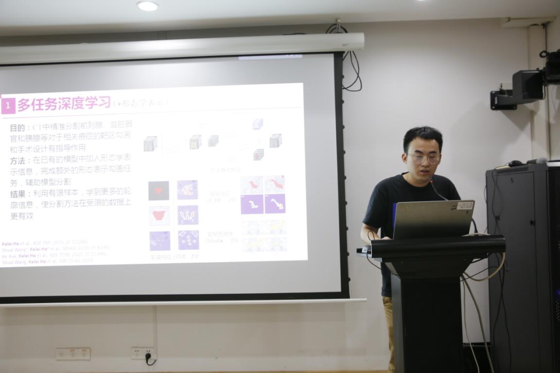 何克磊老师围绕了多任务学习构建鲁棒医学图像分割方法这一主题的研究内容向在场的师生进行介绍与交流。