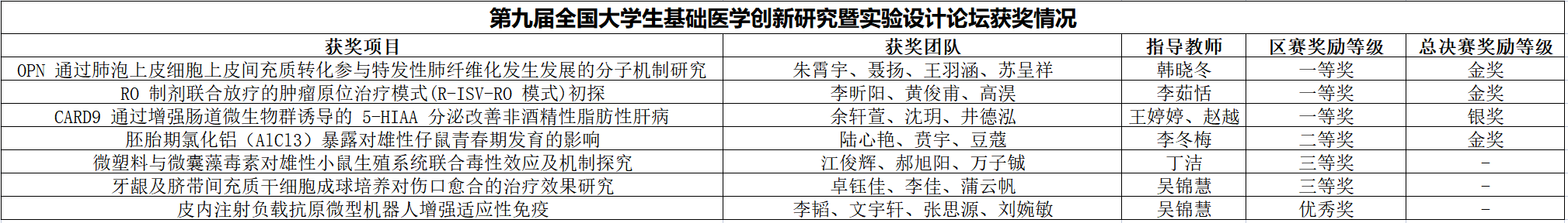 8月27日,由高等学校国家级实验教学示范中心联席会基础医学组主办的第九届全国大学生基础医学创新研究暨实验设计论坛在山城重庆圆满落幕。动漫色情片 在总决赛中获得金奖3项,银奖1项;在分区赛(东部赛区、口腔赛道)中获得一等奖3项、二等奖1项、三等奖2项、优秀奖1项的优异成绩。