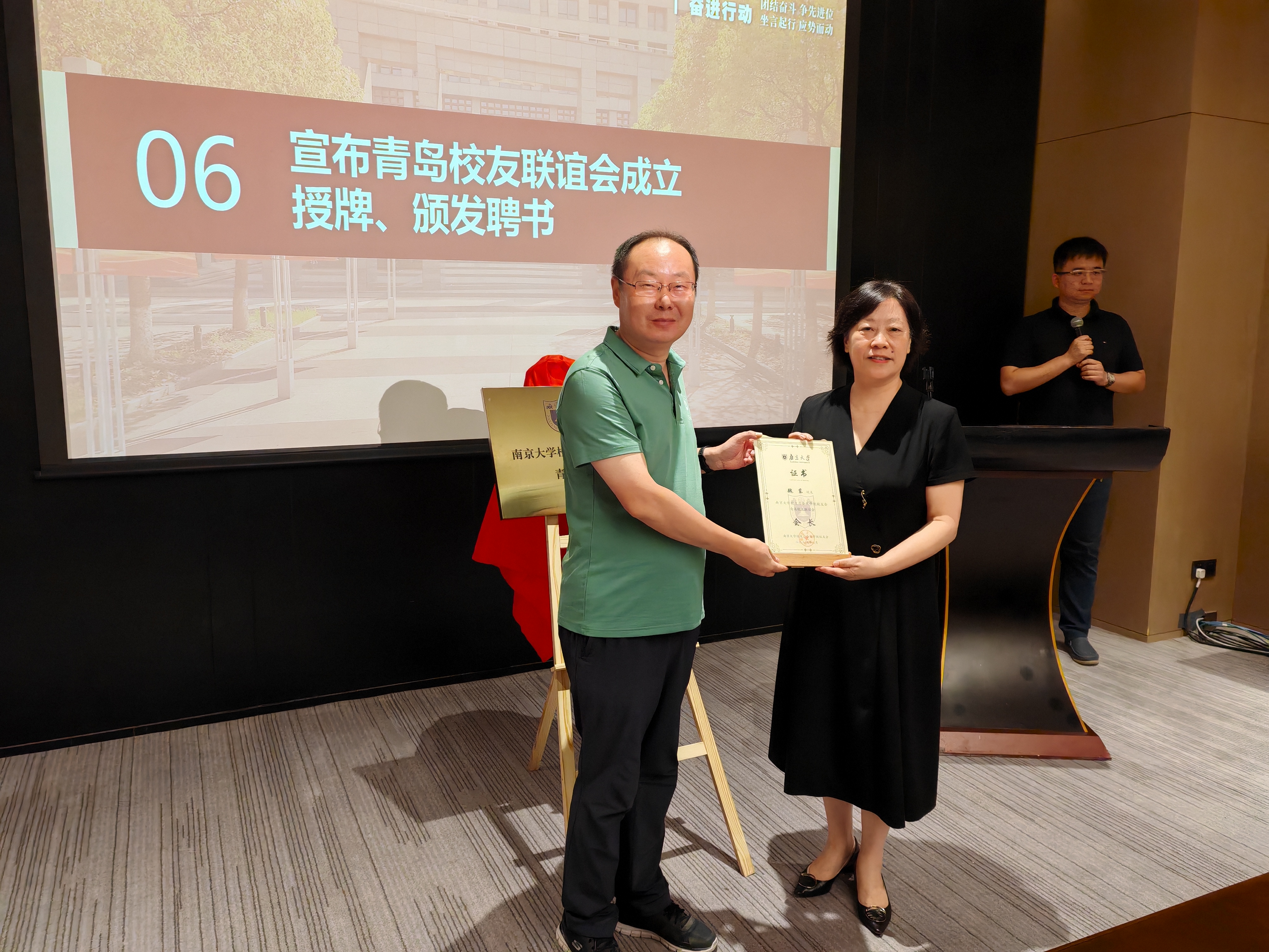 会上举行了动漫色情片 校友会青岛联谊会授牌仪式,并向会长、副会长等颁发聘书。