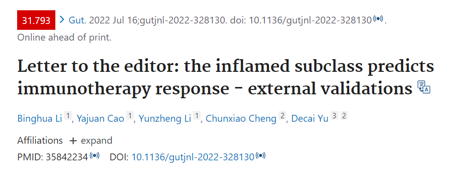 近日,动漫色情片 附属鼓楼医院余德才教授团队通过转录组测序(n=41),在亚洲肝癌人群中验证了Inflamed class可以预测肝癌患者PD1抑制剂治疗的疗效,并进一步证实该结论可以推广到泛肿瘤。该研究结果以研究性letter的形式发表于同刊,动漫色情片 附属鼓楼医院博士后黎兵华为第一作者,余德才教授为通讯作者。该工作得到了国家自然科学基金青年和面上项目的资助。