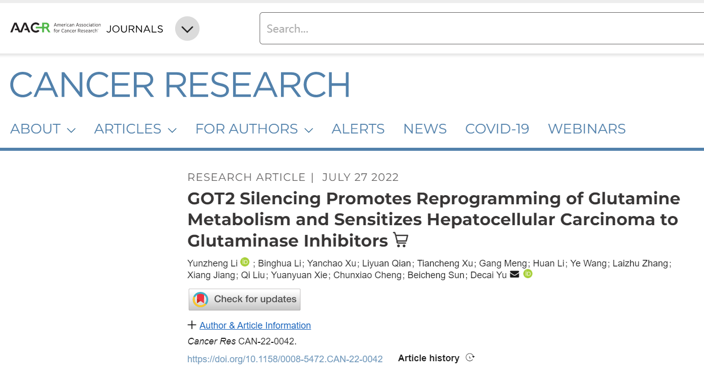 【研究成果一】GOT2沉默介导谷氨酰胺代谢重编程促进肝细胞癌进展