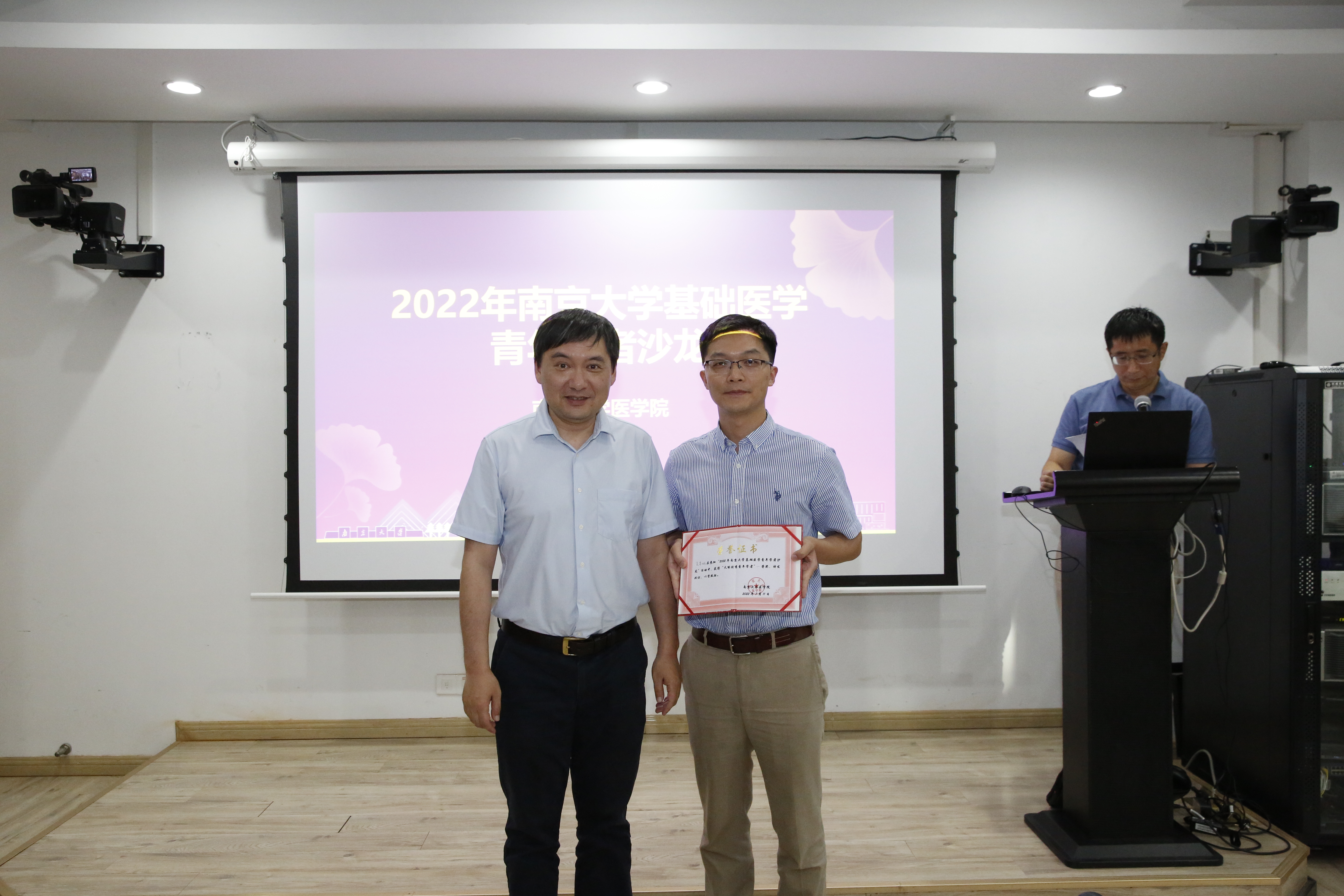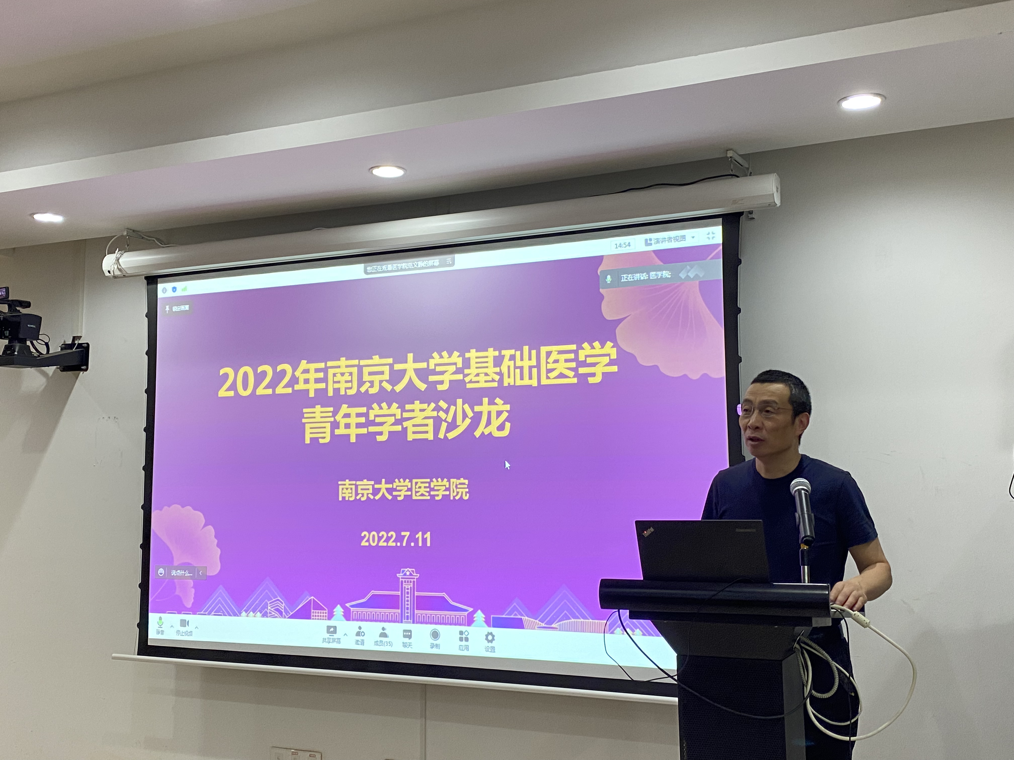 The “2022 Nanjing University Basic Medical Science Young Scholars Salon” was successfully held at the Gulou Campus of Nanjing University Medical School on July 11th, 2022. Over 180 teachers and students from the Department of Basic Medicine and the Model Animal Research Centerattended the event. Vice Dean Jiang Qing presided over the opening ceremony and delivered a remark. Vice Dean Wang Hongwei gave a general report on scientific research achievements of the School for the first half of 2022. Vice Dean Wang Tingting participated and hosted the conference report session.