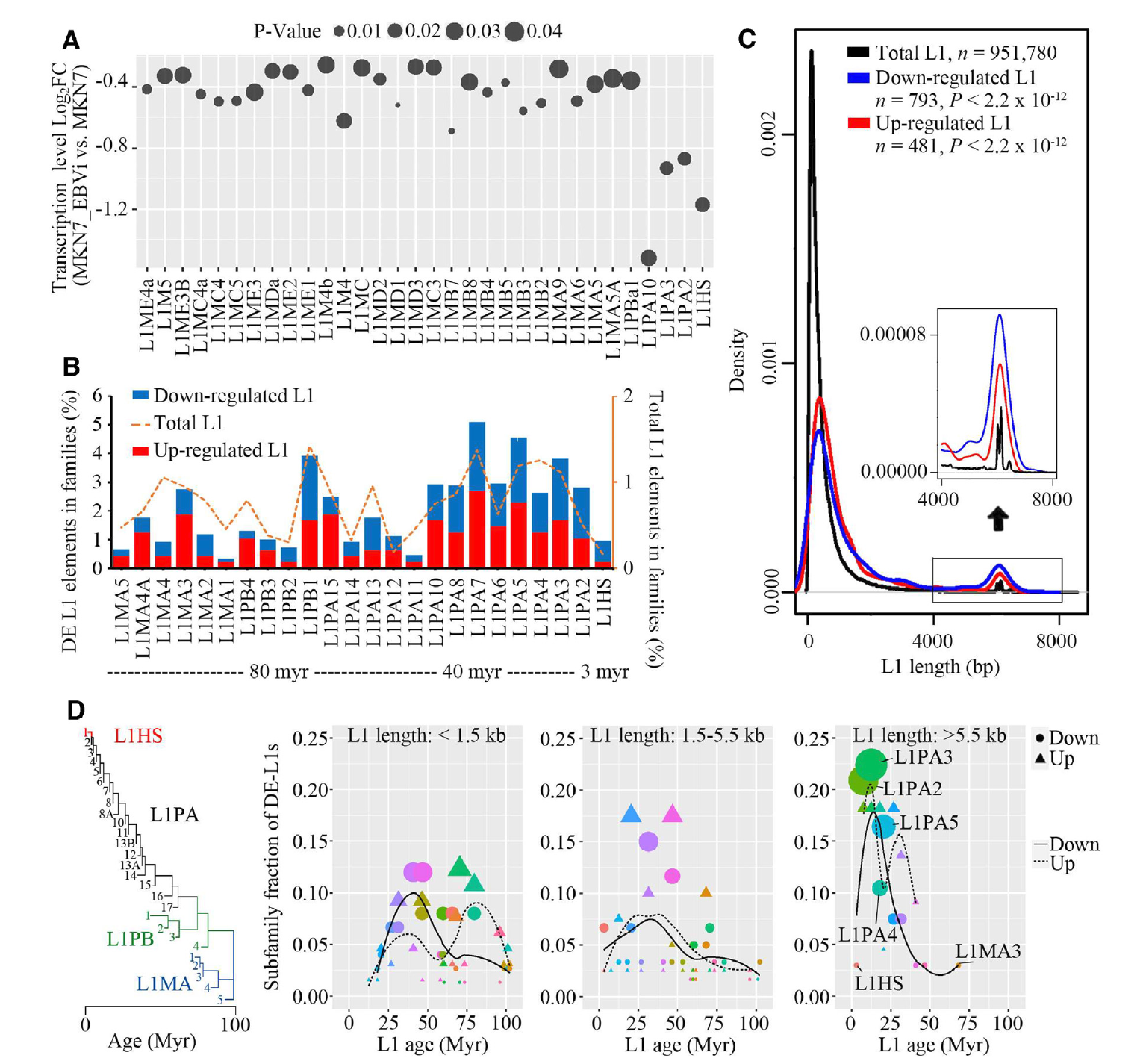 Figure 1: Young and full-length L1s were the most repressed L1s in EBV-infected gastric cancer cells.