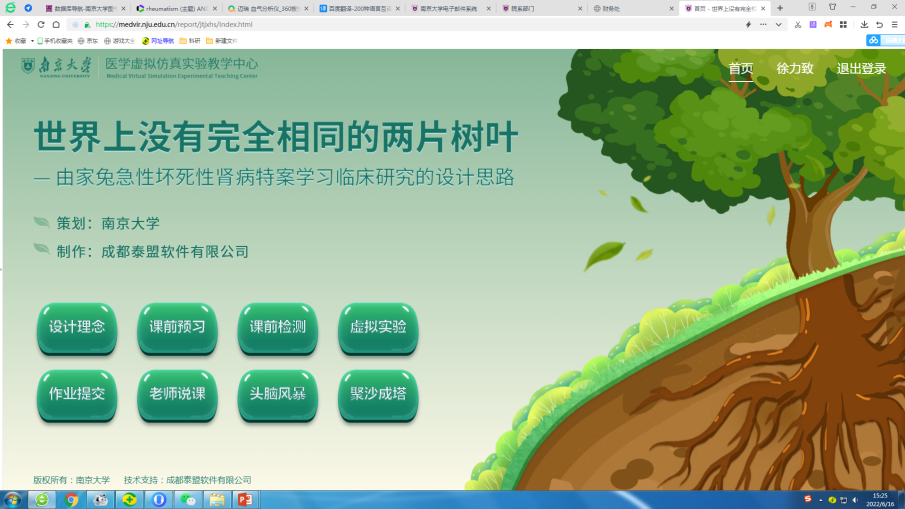 2022年度“高等学校医药类虚拟仿真实验教学项目作品展示”——世界上没有完全相同的两片树叶——由家兔急性坏死性肾病特案学习临床诊疗的预案设计,二等奖。